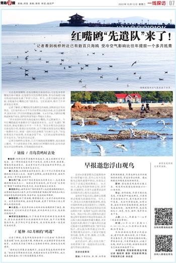 ~~~记者看到栈桥附近已有数百只海鸥 受冷空气影响比往年提前一个多月抵青