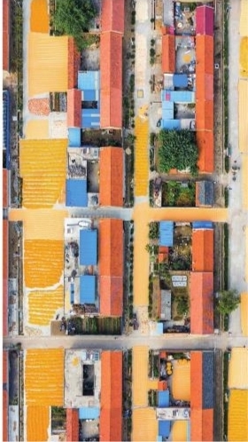 作为2022年国家乡村振兴示范县,莱西市的农村是最美的颜色。房前屋后、农家院落,金灿灿的玉米有的悬挂于墙上,有的排列在农场上,在阳光下格外耀眼,火红的辣椒也毫不吝啬地伸出一角,饱满的玉米粒撒落在簸箕里,蹲在家门口的大黄狗伸了伸懒腰,与玉米棒融为一体守护着秋天的果实,处处是一派丰收的美好景象。