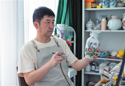 “从小就喜欢美术、学习美术,1985年,我进入崂山吕剧团,负责舞台美术工作,参与了多部影视剧的拍摄,承担道具和背景制作工作。”蓝滨告诉记者,1999年,他被调入李沧区文化馆美术组,负责各类演出舞美设计,并担任李沧区美协副秘书长、秘书长。在机缘巧合下,蓝滨走进了文物修复的大门。“在工作中,我发现美术功底可以用于文物建筑和彩绘的修复。当时我就想,自己应该为文物保护和修复出一份力,面对祖国如此之多的艺术瑰宝,我要尽力守护它们。”2012年,蓝滨主动申请调入李沧区文物管理所,开始从事文物建筑修复和馆藏文物修复等工作。