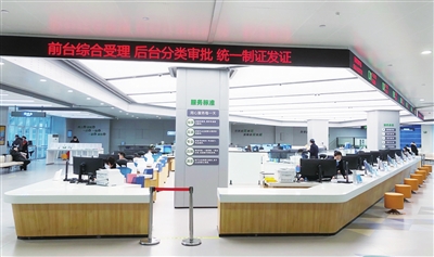 2020年12月15日,位于青岛国际创新园的崂山区行政服务大厅正式启用,涵盖了原政务办理大厅、公安、不动产、人社等6个原区级办事大厅,设置行政审批、公安、不动产等10个综合服务区,140余个办事窗口全天候服务,真正实现“只进一扇门,办好所有事”。大厅设置24小时自助服务区,群众可自助办理200余项依申请政务服务事项,“刷脸”领取38项高频许可证照,行政许可事项“一窗受理”率达到100%。办理各类业务数量从2012年的年均2.6万件增长至2022年的14万件。