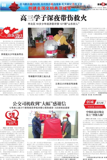 ~~~市北区18岁少年经济获评第127期“山东好人”