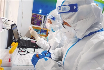 带着降压药,毅然决然进入敦化路街道伊春路社区高风险区工作,今年48岁的市科技局基础处副处长、二级调研员郑山河以实际行动践行着一名共产党员的初心和使命。在重点区域,郑山河从早上5点多开始便挨家挨户上门进行核酸检测、测体温、录入信息、运送生活物资……直至深夜。谈起工作过程,郑山河说:“楼道很暗,护面具里全是雾气,看不清楚,我们就自带手提灯;老年人没有智能手机,只能手工录入身份信息,戴着防护手套很不方便;有的老年人不耐烦,我们就耐心安抚劝导。”