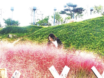 值得一提的还有小麦岛,秋季的小麦岛是一片粉色的海洋,大片大片的粉黛乱子草绵延于海天之际,梦幻而浪漫,再配上黄昏时分的落日,堪称绝美,吸引了众多市民和游客前来观赏拍照,这是城管局向市民发出的邀请,邀大家共赴一场浪漫的山海之约。