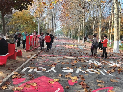 太平角公园可以称得上初冬绝不能错过的拍照地,公园以原生态植物林地为主题,主干道两侧种满了梧桐树,落叶铺满道路,尽情地为初冬进行装扮,远远望去仿佛一条金色的时空隧道。近日,公园内的“丘比特小路”经过翻新后正式亮相,道路两旁的梧桐也进入了最佳观赏期。这条布满爱心、丘比特小天使以及告白语的浪漫小路,展示着青岛的专属浪漫。据了解,“丘比特小路”是今年青岛海洋婚恋文化周推出的爱情打卡地之一,这条“以爱之名”的小路,将持续营造市南区沿海一线的浪漫氛围,把缤纷美好的祝福送给每一个路过此地的有情人。不管是情侣还是夫妻,都可以在这里找到属于自己的浪漫时光,让青岛的海天一色见证最美的爱情誓言。一大早,记者就在公园看到,翻新后的这条“丘比特小路”色彩饱和度更强,更生动了。公园里有牵手遛弯的爷爷奶奶、有吹萨克斯的大叔,有悄悄甜蜜拍照的小情侣,还有组团来拍照打卡的阿姨们,冬天的故事在人来人往中落幕更迭。正在和姐妹们一起拍照留念的市民张阿姨对记者说:“现在最适合拍照,因为有一地的金黄枫叶或者银杏树叶,拍出来的照片非常美。我们几个老闺蜜,经常互相招呼着集体来拍照,在这座天然氧吧里享受大自然的馈赠。”逛完太平角公园,可以顺路去打卡湛山三路的银杏大道,周末行动起来吧。
