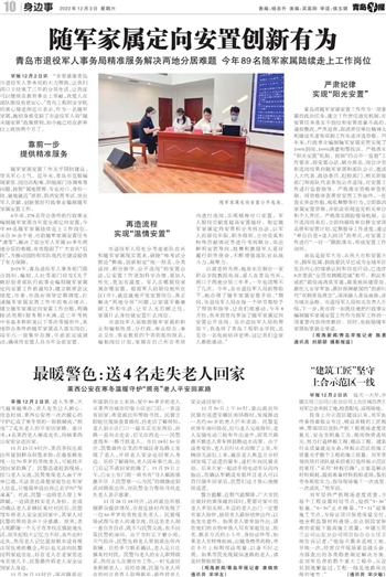 ~~~青岛市退役军人事务局精准服务解决两地分居难题 今年89名随军家属陆续走上工作岗位