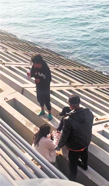 12月4日,记者联系上了今年69岁的单志强,听他讲述了两天前所经历的救援过程。“2日下午2点20分左右,我到欢乐滨海城附近的海域钓鱼,看到一名女子站在紧邻大海的堤坝边。”单志强告诉记者,当时自己在绑钩钓鱼,刚想开口提醒对方海风大、注意安全时,却见这名女子一下子落入海里。见此情形,单志强把鱼竿一扔,朝着女子落水之处跑去。“看到她坠海,我赶紧起身去追,无奈风浪较大,很快把她带离岸边,我没拉到人。我只能边跑边喊救人,可海边当时空无一人。我又赶紧打电话报警。”据单志强介绍,他呼救了好一会,终于看到一位跑步的市民远远地跑来。他赶紧招手,叫对方过来帮忙。