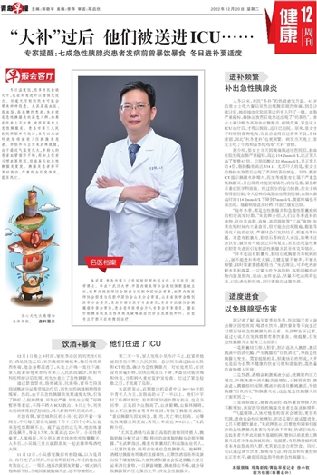 ~~~专家提醒:七成急性胰腺炎患者发病前曾暴饮暴食 冬日进补要适度