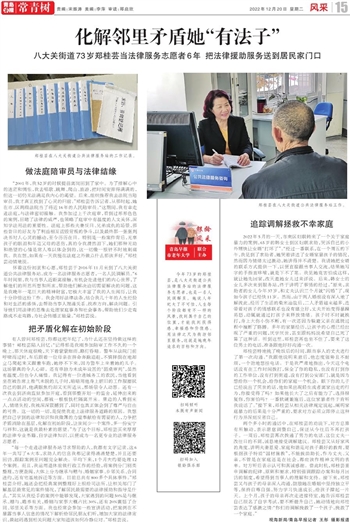 ~~~八大关街道73岁郑桂芸当法律服务志愿者6年 把法律援助服务送到居民家门口