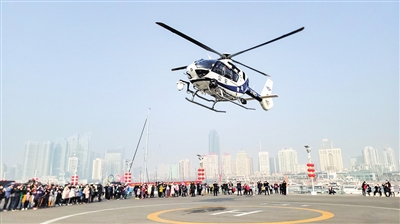 “太酷了!长大了我也要开飞机!”活动现场,腾空而起的警用直升机引来小朋友们阵阵欢呼。这是去年9月30日列装履职的青岛警务航空队首架警用直升机,标志着青岛公安工作迈入警航时代,展现了青岛公安最新警务实战力量,对提升社会治安驾驭力掌控力、打造现代化治理样板城市具有重要作用。