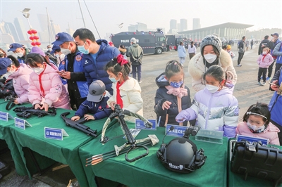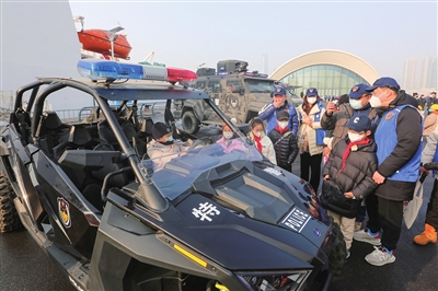 早报1月8日讯 今年1月10日是第三个中国人民警察节,1月8日,青岛市公安局在奥帆中心举办“警营开放日”活动。市民群众、媒体代表和青岛公安金盾志愿服务队“一二一童学荟”的小队员们参加了活动,大家近距离体验警营生活,领略别样“警”彩,感受青岛公安的新气象、新变化。