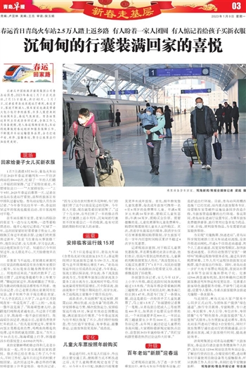春运首日青岛火车站2.5万人踏上返乡路 有人盼着一家人团圆 有人惦记着给孩子买新衣服~~~