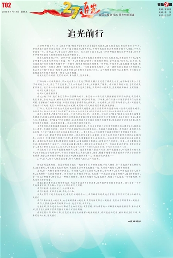 在过去的27年,我们看见了每一个温暖的时日。看见每一个平凡的人怀揣着的不平凡的梦想,我们看见他们肩膀上扛起的生活,看到他们艰辛中的微笑,困乏中的多情。27年来,我们日复一日地守护着我们这张新闻纸,守护着我们的新闻理想,并用这理想守护着青岛这座城市。时光呼啸,当2023年与希望之光一同抵达我们的内心深处时,我们一如既往地互相祝福,祝愿每一个人都能遇见幸福,拥抱梦想。