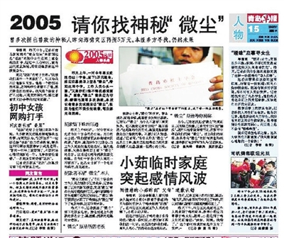 2005年新年,青岛早报在显著位置上刊发了一篇题为《2005,请你找神秘“微尘”》的报道,开通热线电话希望有知情者提供线索,找到这个好人。