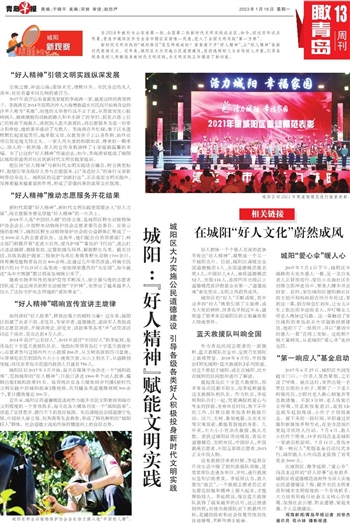 城阳区的“好人”不断涌现,其中众多的“好人”典型引领了主旋律,成为大家的榜样,仅青岛早报近年来,就报道了很多来自城阳区的正能量典型人物或事件。