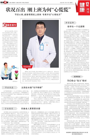 春节是合家团聚、尽享天伦之乐的时候,全家人齐聚一堂,都想尽情放松,还要四处拜访亲朋好友……但这也导致了春节过后很多上班族出现疲惫、嗜睡、神经性厌食、不想上班等症状,这些症状的综合表现也被专家称为“节后综合征”。青岛市精神卫生中心心理科主任潘惟华提醒,节后综合征是大多数人的一种正常心态,大家可通过积极的自我调整尽量减少节后综合征的发生,或降低其对我们的生活工作带来的负面影响。而对于即将开学的孩子们来说,从现在起就要开始有计划地进入过渡期。