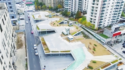 与以往的方正造型停车场不同,中央商务区停车场设计结合了中央商务区规划发展理念,借鉴了纽约高线公园“线型空中花园”理念,在地上营造出一个波浪形公共空间,方便市民活动,全部停车泊位放入地下,在楼宇林立的密集空间中,打造公园绿地,在服务停车的基础上为商务区提供了新的“城市会客厅”,有效改善中央商务区的空间结构。