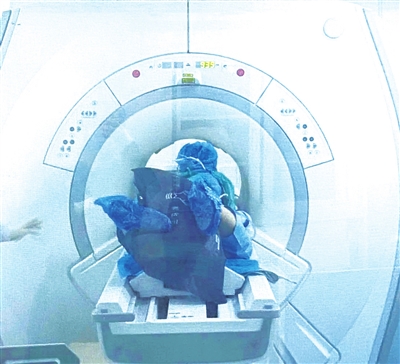 做核磁共振时,彬彬的身体需要完全进入核磁机里,为了保证其能正常呼吸,必须有人在其身旁持续进行呼吸囊正压通气。与放射检查人员共同安置好小彬彬,王倩毫不犹豫地爬上检查床。她弓起身体,像安全罩一样支撑在彬彬身体上方。检查过程中,她一边持续进行呼吸囊正压通气,一边观察着患儿的脸色,同时抬高小腿,双脚夹住氧气袋,保障氧气供给压力。20多分钟后,检查结束。尽管核磁室内气温很低,王倩的衣服却已被汗水浸湿。全身酸痛的她在检查室门外缓了好久。