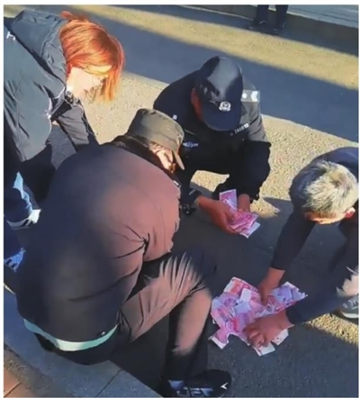 “很快,散落的钱就被捡回了。”参与捡拾的栾坤回忆道,当时在现场有十多人帮助捡钱,并且,大家捡到之后还非常自觉地将钱归拢在一起,交给不慎散落现金的刘先生。