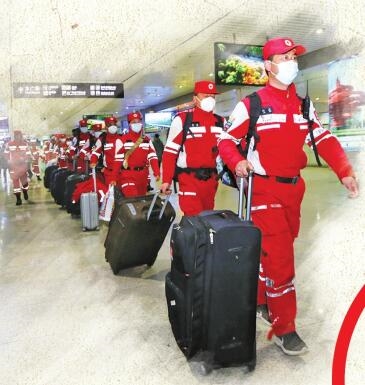 昨日下午,青岛红十字搜救队回青。观海新闻/青岛早报首席记者 孙启孟 摄