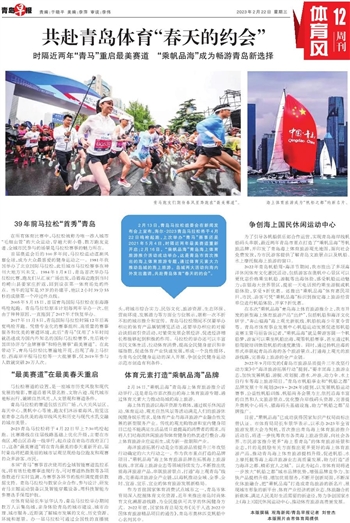 2月13日,青岛马拉松组委会在新闻发布会上宣布,海尔·2023青岛马拉松将于4月22日鸣枪起跑,上次举办“青马”赛事还是2021年5月4日,时隔近两年最美赛道重新开启;2月16日, “乘帆品海”青岛海上体育旅游推介活动成功举办,这是青岛市首次推出的海上体育旅游专题,通过体育元素大力推动岛城的海上旅游。岛城两大活动向海内外发出邀请,共赴青岛体育“春天的约会”。