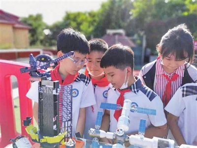 青岛市实验小学教导处主任刘翔介绍,学校从三个方面建立人工智能教育STEAM+课程体系,第一个层次面对低年级的同学,主要让他们了解和认识什么叫人工智能。第二个层面则利用现有的人工智能平台和软硬件来拓展学生的视野,让他们动手操作,通过编程让实验室的人工智能设备动起来,激发学习兴趣。第三个层次是培养学生的跨学创新思维。“学校人工智能教育的亮点体现在每年一度的科技节上,每个科技节通常都设置了一个人工智能主题,再加上一个其他主题。比如2022年9月份,我们主题就是人工智能太空,学生们的实践作品有人工智能的月球基地、天宫里的人工智能内容等,还是有很多很有创意的作品的。”刘翔道。