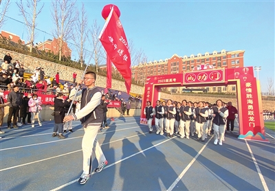当天,青岛九中在学校操场举行2020级高三百日誓师大会,高三全体师生在掌声和祝福声中依次跑过“成功门”。青岛九中校长孙睿向全体高三学子们说出了殷切期望。“生命不打草稿,人生没有彩排,机会失去了就不能重来!所以,从点滴做起,上好每一节课,做好每一份笔记,完成好每一科作业,合理高效地利用好未来的100天,让每一根神经都为备战高考而紧绷,让每一滴血液都因冲刺高考而沸腾。积蓄力量,你们的梦想将在六月喷薄!”