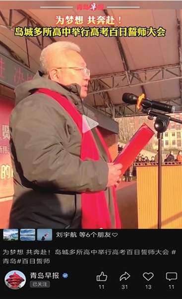 “100天的时间里,老师也许会对你们有更严格的要求,更艰苦的训练,更严厉的批评,但请你们相信,老师的初衷,是为了让你们飞得更高、飞得更远、飞得更稳!”在青岛六十八中的百日誓师大会上,高三年级主任江通发自肺腑地对高三学子说。青岛六十八中校长翟召东深情地说:“学校始终会是大家坚强的后盾。在未来100天的时间里,老师会陪着每一位高三考生一起收获属于自己的果实。”