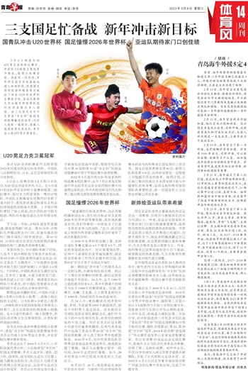 3月6日晚进行的U20男足亚洲杯比赛中,中国队2:0战胜卫冕冠军沙特队,取得小组赛首胜。而在同一时间段,另外两支国字号的备战也进入加速阶段,执掌国足帅印的扬科维奇再次喊出了冲击2026年世界杯正赛的目标,亚运队新帅久尔杰维奇即将带队进行的西亚集训令人期待。在三支国足当中不乏青岛“市长杯”校园足球联赛输送的球员:刘洋入选新一届国足,张威入选国家男足亚运队,李苏达入选U20男足国家队。