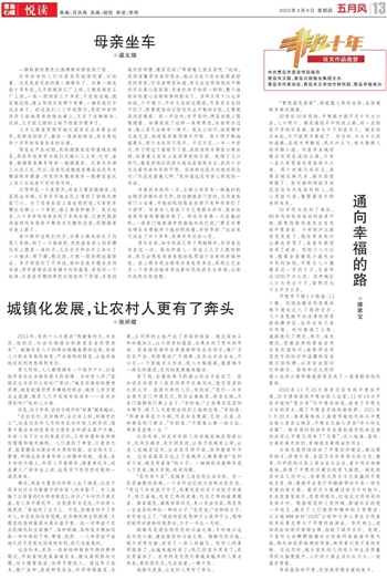 苦尽甘来,如今我家已有了两辆轿车,但母亲没有坐过一次。每当和家人一同坐上儿子儿媳的轿车,我总会想起母亲坐拖拉机那溢于言表的幸福神色。坐上轿车我会感觉母亲在我身边,真想让已去另一个世界的她享受这新时代的欢乐与幸福,以弥补我终生的遗憾。