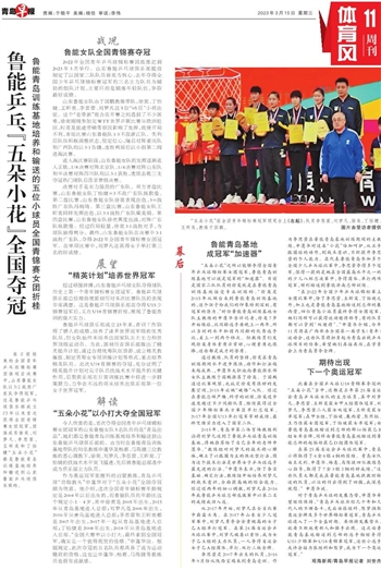 在日前结束的全国青年乒乓球锦标赛团体项目决赛中,山东鲁能女队以3:1战胜广东队夺得冠军,这是鲁能乒乓球俱乐部成立23年以来首次获得全国青锦赛女团冠军,团体成员徐奕、刘梦凡、李思萱、王昕奕和丁怡婕“五朵小花”都是鲁能青岛训练基地培养和输送到山东鲁能乒乓球俱乐部的。
