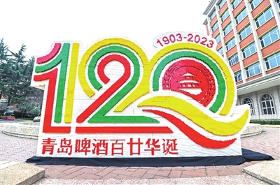 作为本次活动的“重头戏”,青岛啤酒120周年华诞纪念标识备受关注。这个采用红、绿、金三色,由数字“120”“1903—2023”和青岛栈桥回澜阁图标,麦穗、波纹等造型组成的纪念标识,代表着青岛啤酒120年的里程碑与新起点。