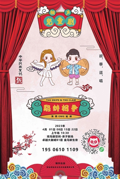 该剧由青岛本土知名戏剧社团——戏岛戏剧的创始人张钰牵头制作。他告诉记者,儿童剧与传统曲艺形式有着诸多契合点,此次改编的“鹬蚌相争”成语典故出自《战国策·燕策》,也是中国传统曲艺太平歌词的经典曲目唱词之一。该剧将寓言故事化静为动,进行了本土化、现代化的编创,旨在让孩子们在快乐中体验中国传统文化的魅力,寓教于乐。