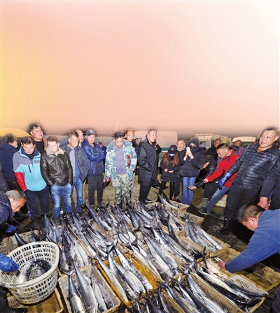 从外地收获的头船春鲅鱼从沙子口上岸 早报记者凌晨码头直击上万斤鲅鱼3小时被抢光