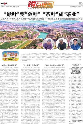 ~~~从业人员1万余人、年产干茶近千吨、总收入近3亿元……崂山茶已成王哥庄街道富民增收支柱产业