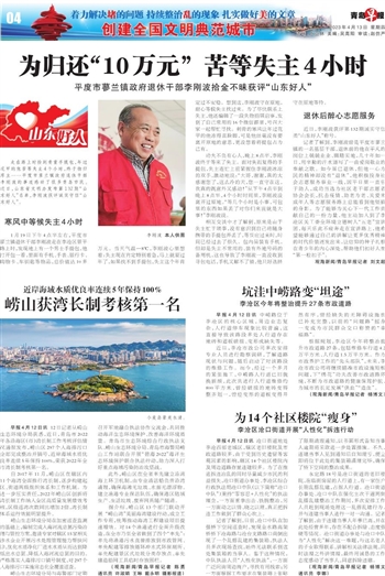 ~~~平度市蓼兰镇政府退休干部李刚波拾金不昧获评“山东好人”