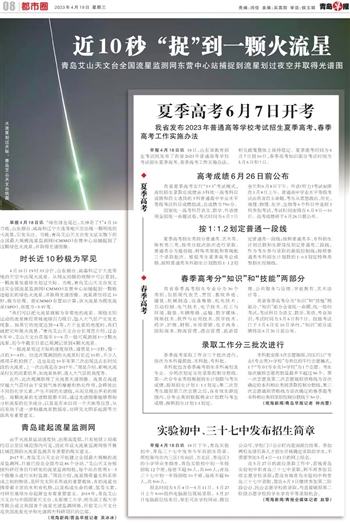 2017年,青岛艾山天文台开始建立全国最大规模的流星监测网,目前已经在全国布设86个分站。“艾山天文台根据科研任务自行研发的流星监测相机,每个站点使用1—5个摄像头进行实时监测。”周昆介绍,流星携带着太阳系形成之初的物质,是研究太阳系形成的重要载体,有的流星也携带着丰富的水和有机物,以及构成生命的碳、氢等元素,对研究地球生命起源也有着重要意义。2019年,青岛艾山天文台与中国国家天文台、太原理工大学、哈尔滨工程大学等联合成立我国首个流星光谱监测网络,目前艾山天文台是我国流星光学和光谱两大科研项目的总部。