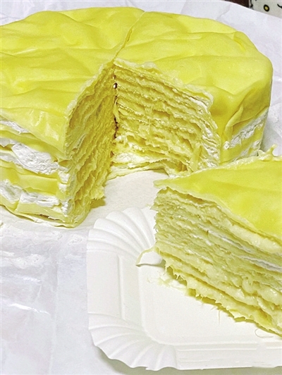 甜品的存在千变万化,但真正能成为“经典”的,看来却是寥寥无几。近几年,榴莲千层成了美食圈大红大紫的“水果蛋糕”,其实,它并不是普通的“水果蛋糕”,严格来说,也并非蛋糕。这款让无数甜品控、榴莲控们欲罢不能的榴莲千层,一层面皮一层榴莲奶油,层次分明,榴莲香完美地化解了面皮的甜,到了嘴里自然也就不腻了。极高的颜值、细腻而富有层次的爆浆口感,榴莲千层的出现让美食达人文佳的蛋糕店线上收益不菲。她店里的两款招牌千层蛋糕馅料是榴莲和开心果,每天卖出量极大。“榴莲千层,比空口吃榴莲还过瘾。”这是网络直播间里大部分网友对榴莲千层的评价。一整只榴莲千层价格不过百元,同样也给众多榴莲爱好者一个大快朵颐的理由。