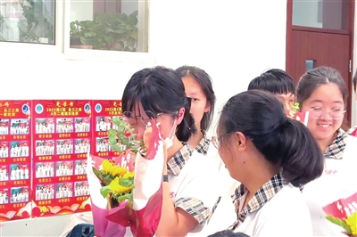 从高考倒计时百日,到终于到了迎战高考的最后一天。昨日中午,考生们收拾书本,提前回家备考。看着眼前这群即将离开学校的学生,曲泽华将提前准备的代表“一举夺魁”的向日葵花束和“高考必胜锦囊”一一送到学生手里,锦囊里有定胜糕、高考好运胸针、幸运书签等。“时间有限,我把自己想对每位学生想说的话,都留在锦囊里了。”打开锦囊,学生们抽出卡片后,前一秒还笑得前俯后仰,后一秒却红了眼眶。“清滋同学:心有所梦,梦有所行。心有所愿,不负青春……”“沛杰同学:笔锋所在,心之所向。行有所成,占尽春风……”道不尽千言万语,最后,曲泽华面向同学们说:“我送此一程,虽不忍离别,但车已到站。我原路返回,你们远走高飞。祝大家前程似锦!未来可期!一举夺魁!二班必胜!”