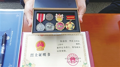 朱建祖老人向记者展示了朱金汉烈士获得的6枚纪念章、烈士证明,以及当兵时的老照片。照片上的朱金汉十分英武,尤其是佩戴着纪念章的军装照更是展现出军人特有的风采。
