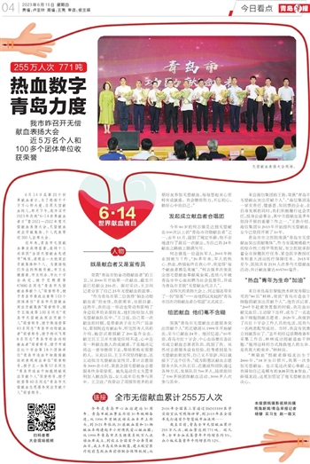 截至目前,青岛全市无偿献血累计255万人次,献血量达到771吨。近几年,全市全血采集量年平均增长约5%,血小板采集量年平均增长约12%。