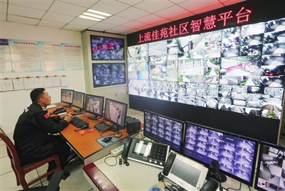 “‘刷脸’进小区只是智慧社区改造提升的一部分。近年来,上流佳苑在原有智慧社区建设的基础上,智能化程度不断升级,增添了不少智慧化设施。”李仁杰一边介绍,一边带记者来到了社区智慧平台监控中心,通过12块LED大屏幕可实时掌握整个社区的运转情况,仿佛是社区的“智慧大脑”。在这里,安保人员会24小时值守在屏幕前,每时每刻服务于社区居民。