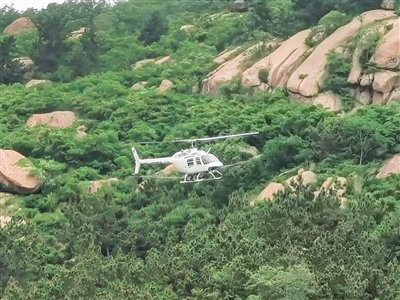 李沧飞防区域多为山丘,高度差大、地形复杂,选用直升机作业具备远程实时监控和面积自动计量的功能,能够实时监控作业飞机的飞行高度、飞行速度、喷洒轨迹等,自动计量飞机施药面积。本次施药防治美国白蛾计划飞防面积约3.5万亩,施药防治松材线虫病媒介昆虫及松树枝枯病计划飞防面积约3万亩。(观海新闻/青岛早报记者 杨博文 通讯员 王彬 摄影报道)