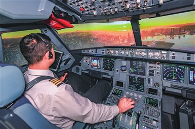 6月20日,南方航空公司与腾讯公司发布国产自研“全动飞行模拟机视景系统”。模拟机1:1复制真机驾驶舱,视景系统基于自研虚像显示技术与游戏引擎技术,实现逼真的沉浸式视觉效果,可模拟高难度飞行、飞机系统故障、恶劣天气等情景,为飞行员提供逼真的驾驶训练体验。该系统实现关键技术突破,使我国在全动飞行模拟机视景系统的视景引擎超写实仿真、高光学性能虚像技术等领域达到了世界先进水平。图为在广东珠海翔翼飞行训练中心,飞行员在模拟机中模拟飞越深圳城市上空。新华社发