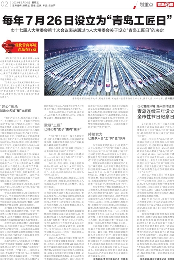~~~市十七届人大常委会第十次会议表决通过市人大常委会关于设立“青岛工匠日”的决定