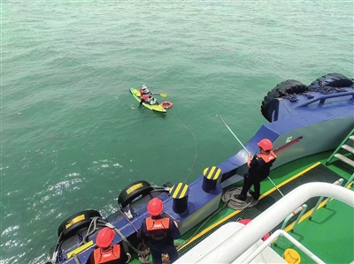 早报7月9日讯 “当时风很大,也就3分钟的时间,我没注意,回过神来的时候已经漂远了,到主航道了。很慌,赶紧往回划,划了15分钟已经没有力气了,有些绝望了。我赶紧报警,110和海事都报了,我只能等待。我没想到是一艘拖轮来救我,后来才知道这是山东港口青岛港轮驳公司的拖轮,他们救援很专业,很感谢他们。”遇险的钓鱼爱好者向记者描述当时的情形时,心情依然不能平复。