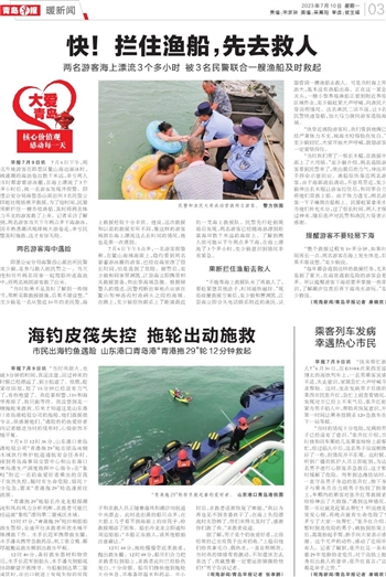 ~~~两名游客海上漂流3个多小时 被3名民警联合一艘渔船及时救起