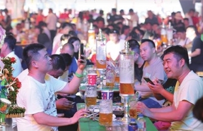 7月14日上午10点,青岛西海岸新区金沙滩啤酒城正式开城,这意味着金沙滩啤酒城正式开启了为期24天的“欢动”模式。