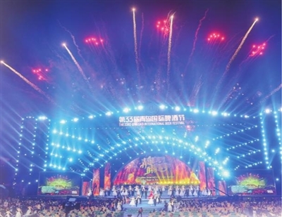 开酒嘉宾共同开启第33届青岛国际啤酒节第一桶啤酒,并与中外嘉宾共同举杯,向四海宾朋发出诚挚邀请——“青岛与世界干杯”。当歌曲《举杯吧朋友》唱响全场时,璀璨的焰火在夜空中升腾绽放,现场达到了高潮。