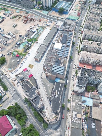 从天幕城北区一路向南,便来到了基本建设完成的青啤路,施工人员正在对路面、道路两侧的绿化进行日常保养。与青啤路一路之隔的,便是天幕城南区了,记者看到天幕城南区四周还立着围挡,施工人员正在进行拆除作业。“目前南区正在做拆除以及方案细化完善等工作,预计今年第四季度完成改造。”项目现场负责人说。