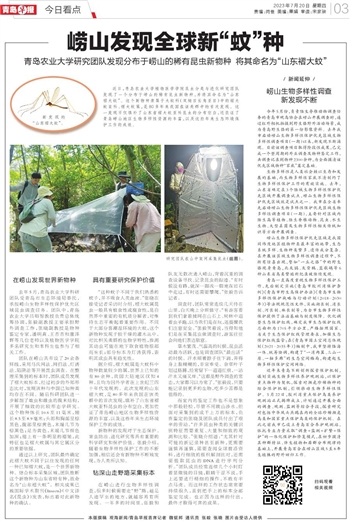 ~~~青岛农业大学研究团队发现分布于崂山的稀有昆虫新物种 将其命名为“山东褶大蚊”
